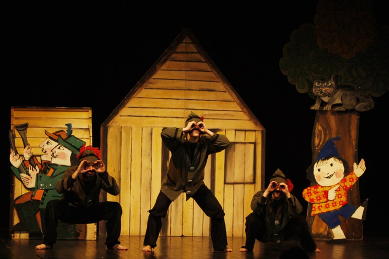 Prokofiev ha scritto la sua fiaba musicale con un preciso scopo educativo: far conoscere i principali strumenti dell'orchestra, il loro suono, il loro carattere espressivo associando ad ogni strumento un personaggio e un particolare motivo musicale. La voce narrante di Dario Fo che rivisita la fiaba originale ridonandole una nuova giovinezza. Sulla scena i tre attori improvvisano e inventano idee strampalate, cercando la complicità del pubblico, per orientarsi fra gatti, papere, lupi, corni e clarinetti. Ogni piccolo spettatore può quindi, nei momenti di interazione, dare aiuto, chiarificazioni e suggerimenti, divenendo così protagonista di un percorso di apprendimento.