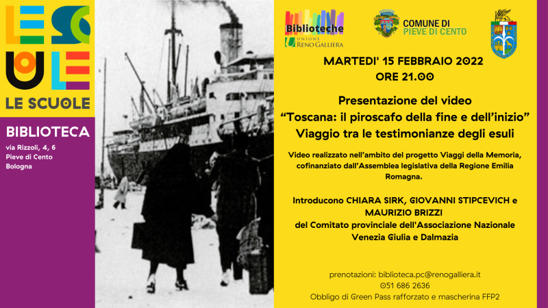 Martedì 15 febbraio, in occassione della Giorno del Ricordo, presso la Biblioteca "Le Scuole" sarà presentato il video “Toscana: il piroscafo della fine e dell'inizio. Viaggio tra le testimonianze degli esuli"