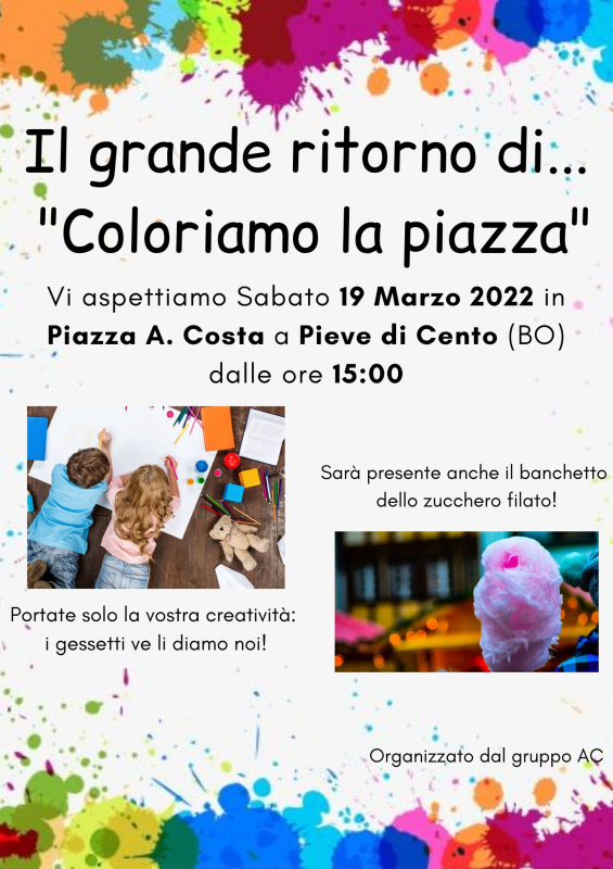Sabato 19 marzo in occasione della Festa del Patrono ritorna Coloriamo la Piazza!