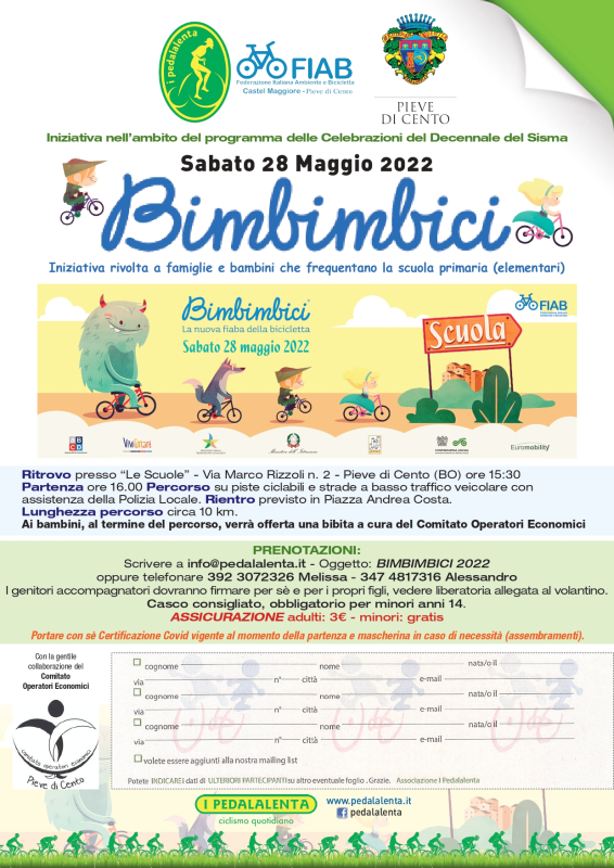 PRENOTAZIONI:Scrivere a info@pedalalenta.it - Oggetto: BIMBIMBICI 2022