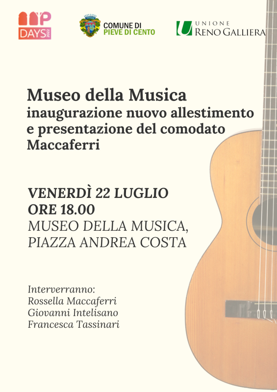 Museo della Musica: inaugurazione nuovo allestimento e presentazione del comodato Maccaferri presso il museo della Musica, piazza Andrea Costa 17.