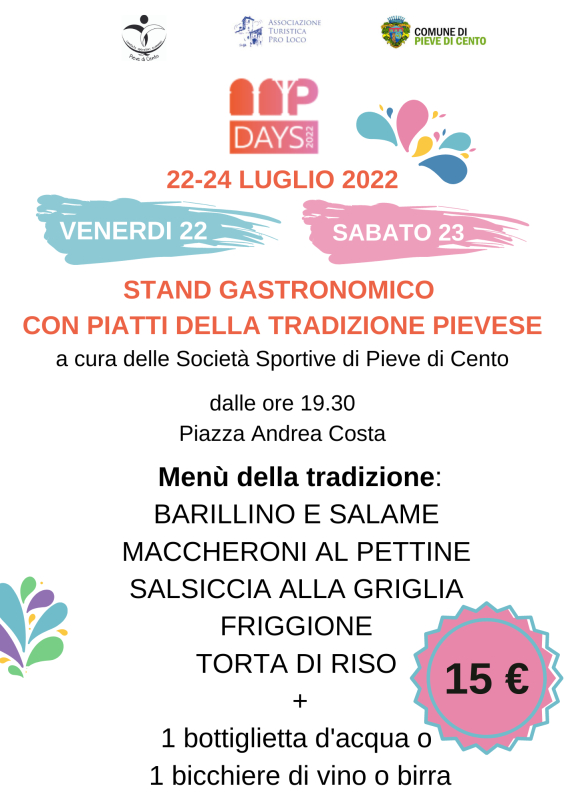 Venerdì 22 e Sabato 23 si terrà durante il PDAYS lo stand gastronomico con piatti della tradizione pievese.
