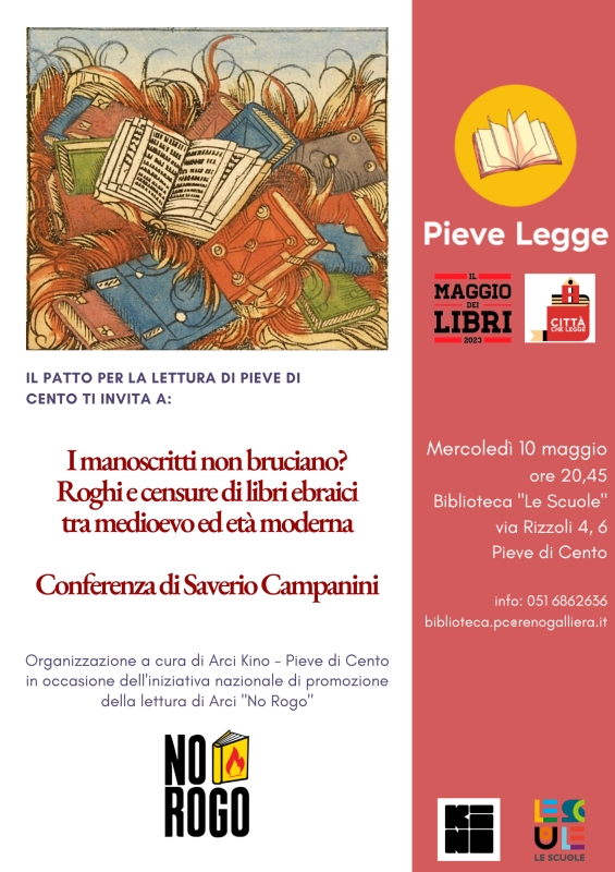 Mercoledì 10 maggio, ore 20,45: "I manoscritti non bruciano? Roghi e censure di libri ebraici tra medioevo ed età moderna" conferenza di Saverio Campanini.