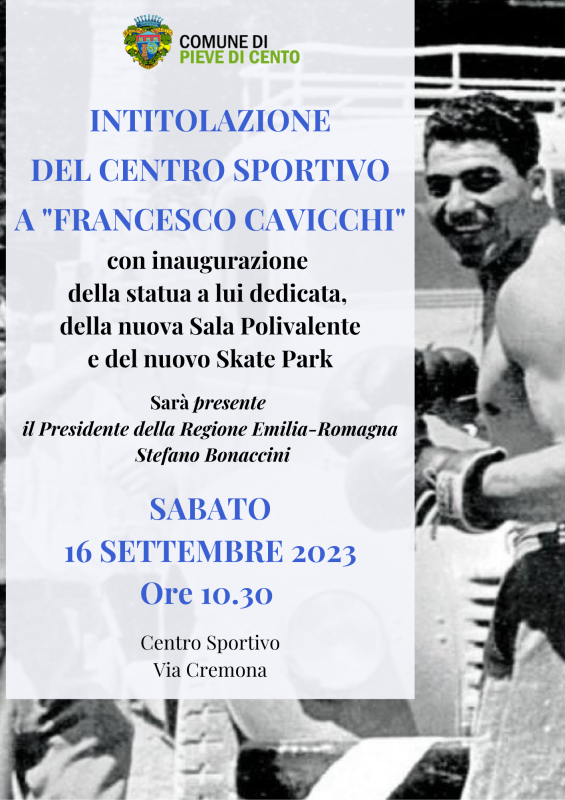 intitolazione del nuovo Centro Sportivo a “Francesco Cavicchi” e all'inaugurazione della scultura a lui dedicata, presso il Centro Sportivo di via Cremona.