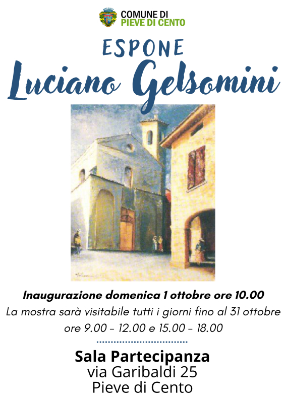 mostra personale di Luciano Gelsomini.L'esposizione pittorica rimarrà visitabile tutti i giorni dalle 9.00 alle 12.00 e dalle 15.00 alle 18.00 per l'intero mese di ottobre.