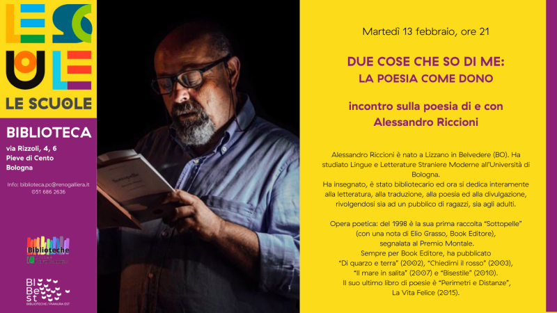 “Due cose che so di me: la poesia come dono” incontro sulla poesia di e con Alessandro Riccioni