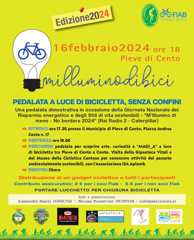 2024 a Pieve continua la collaborazione con l'associazione Pedalalenta per l'iniziativa "M'illumino di bici" che sarà arricchita da un momento iniziale che sposa e valorizza il tema di quest'anno: la sostenibilità senza confini.