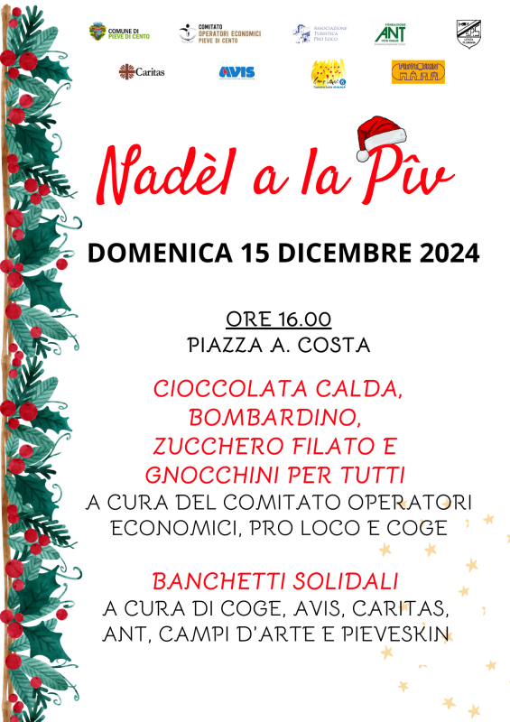 Vi aspettiamo numerissimi domenica 15 dicembre dalle ore 16.00 in piazza A. Costa!