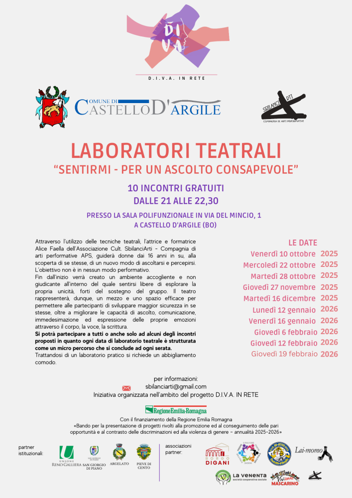 Con il finanziamento della Regione Emilia Romagna «Bando per la presentazione di progetti rivolti ala promozione ed al conseguimento delle pari opportunità e al contrasto delle discriminazioni ed ala violenza di genere – annualità 2025-2026»