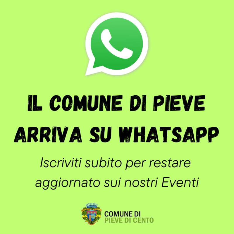 È ora attivo il canale WhatsApp "Comune di Pieve di Cento - Eventi" creato per tenervi aggiornati sugli eventi in programma!