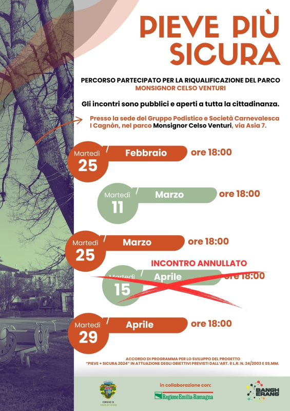 L'iniziativa fa parte del progetto Pieve + Sicura, finanziato dalla Regione Emilia-Romagna.