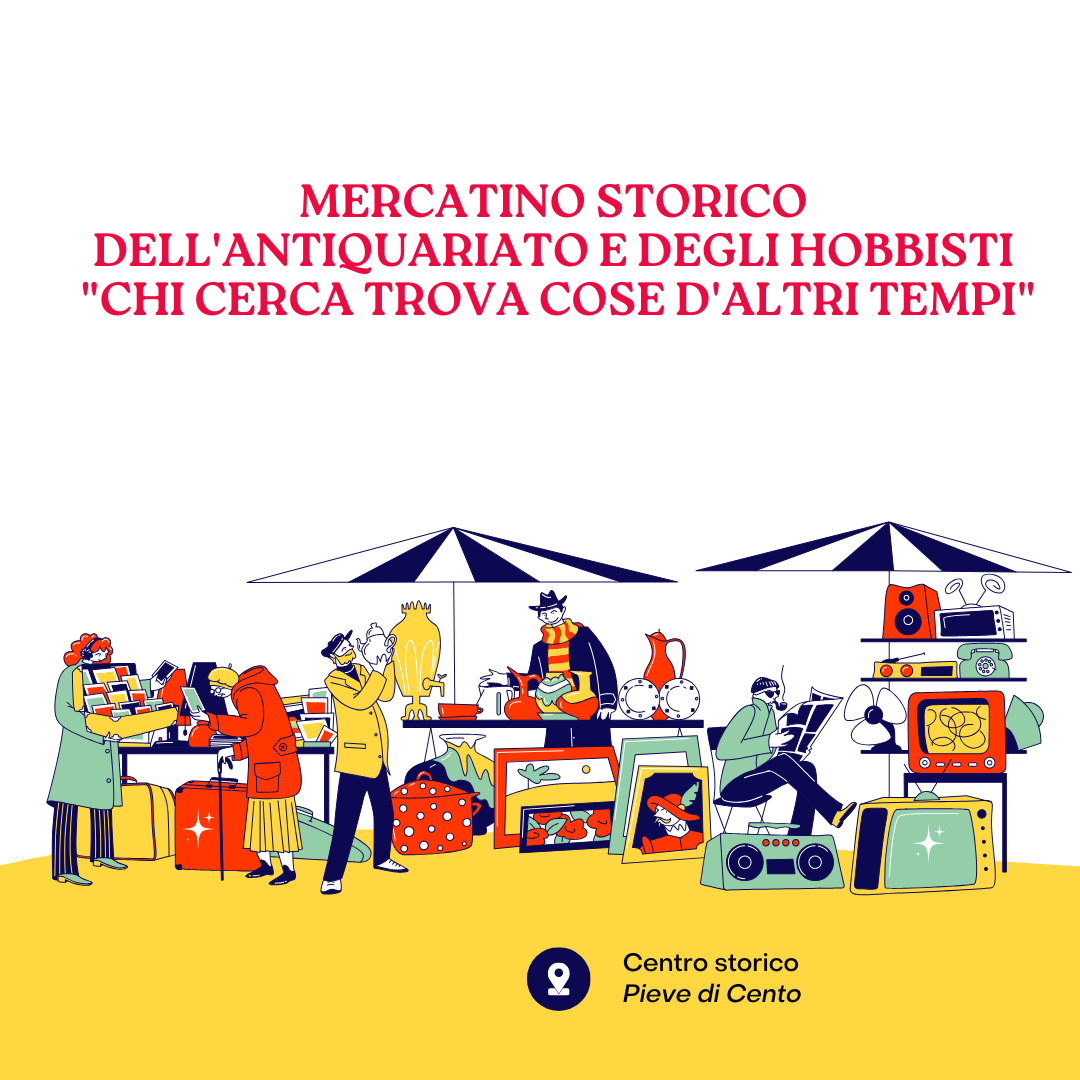 Appuntamento, ogni quarta domenica del mese, nel centro storico di Pieve di Cento con il Mercatino storico dell’antiquariato e degli hobbisti “Chi cerca trova… cose d’altri tempi”, l'evento per collezionisti e appassionati di pezzi d’epoca.
